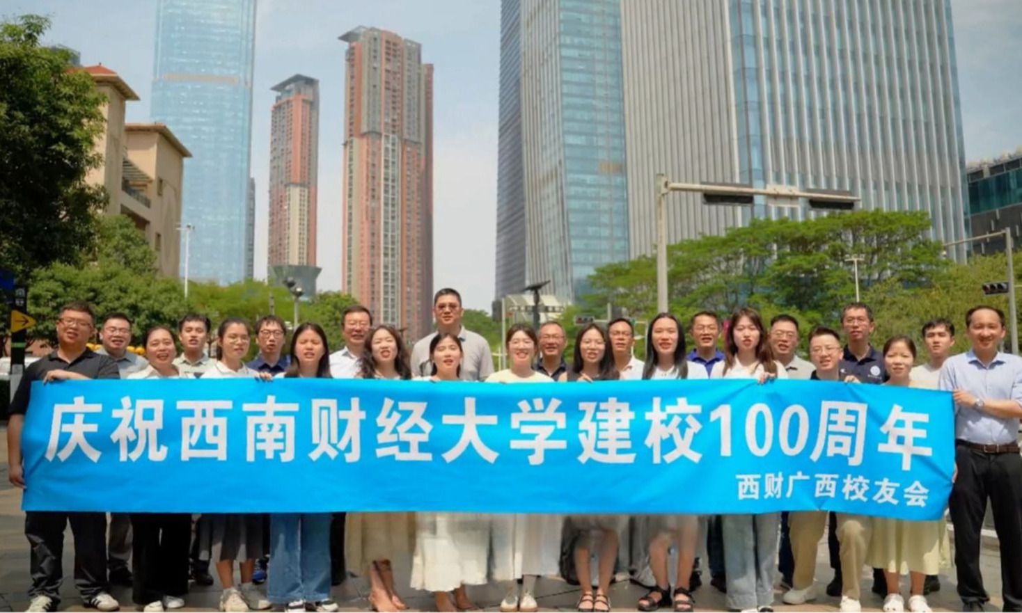 天光云影,白鹭翔集,彩旗招展,心潮澎湃。6月3日,西南财经大学迎来百年华诞,校园里到处洋溢着欢乐气氛。下午三时许,学校在柳湖北畔举行“柳林铁树”培植活动,共同为母校百岁生日祈福。党委书记赵建军,党委副书记、校长李永强,学校名誉校长刘诗白之女刘莎、孙辈代表2007级校友赵晨等共同植树并为“柳林铁树”揭牌,师生代表30余人参加活动。党委副书记明海峰主持仪式。一铲铲泥土堆叠,一桶桶清水浇灌。大家紧紧簇拥在铁树周围,...